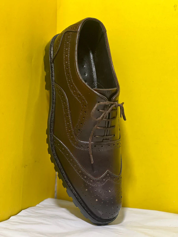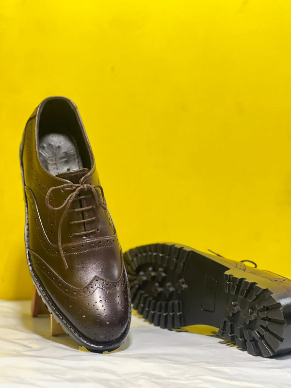 LIGHT BROWN HAND-BRUSHED CALFSKIN LONG WING BROGUES WITH DECORATIONS. AN ELEGANT VARIATION OF CLASSIC MEN’S LACE-UPS